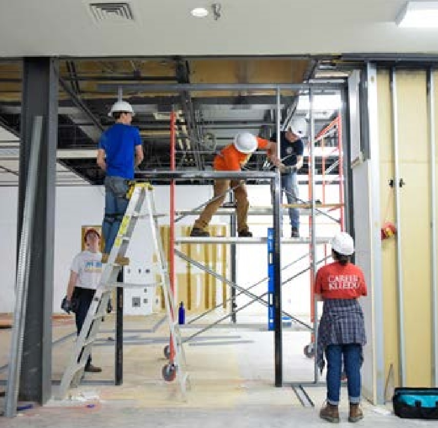 This year Dirt Works Studio took on a two-semester renovation project that was its biggest and most complex to date: the design and construction of a new Chalmers Café in Chalmers Hall.  Photos show some of the construction work on the project: